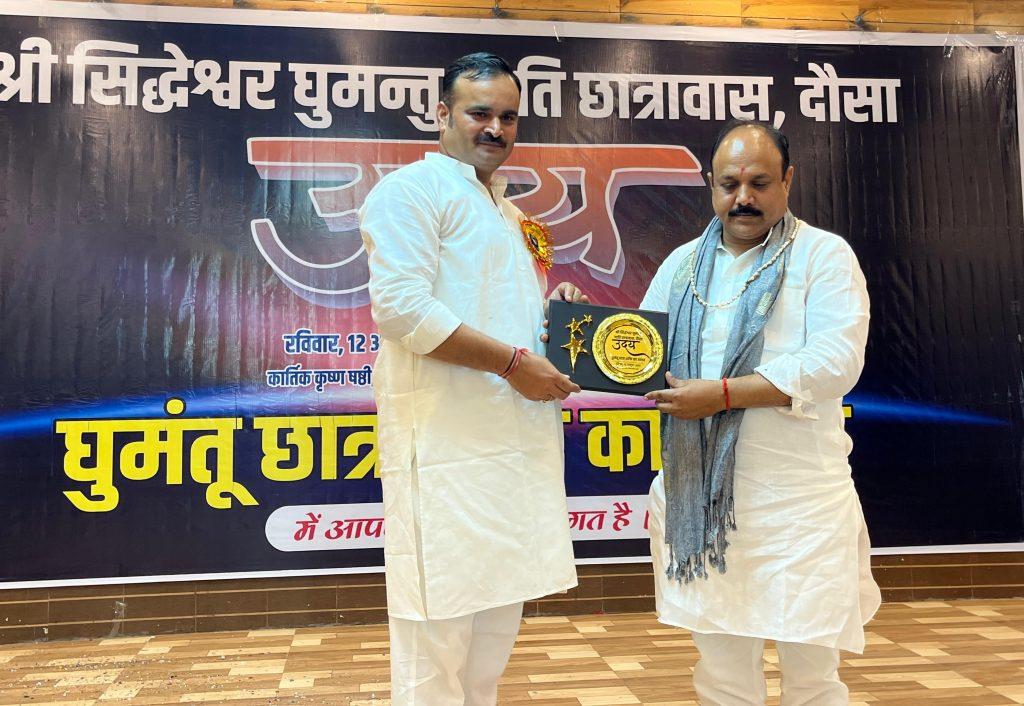 दौसा। श्री सिद्धेश्वर घुमन्तू जाति छात्रावास का वार्षिकोत्सव ‘उदय’ हर्षोउल्लास के साथ रविवार को मनाया गया। इस अवसर पर घुमंतू समुदाय के विद्यार्थियों ने अपनी कला, संस्कृति की रचनात्मक प्रस्तुति देते हुए बौद्धिक क्षमता का प्रदर्शन किया। कार्यक्रम का मुख्य उद्देश्य घुमंतू छात्र शक्ति में आत्मविश्वास, नेतृत्व क्षमता और सामाजिक उत्तरदायित्व की भावना को प्रोत्साहित करना रहा।